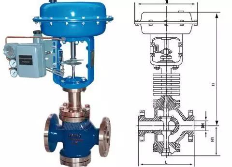 最典型的阀是双座阀,流体从中间进,阀芯垂直于进口,流体绕过阀芯分成上下两束流出。