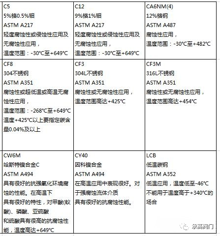 常用的阀门材质与温度关系