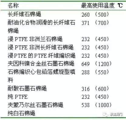 矿物质填料可用于450-500℃的阀门。