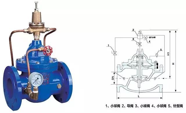 在分支管道上设置减压阀,用来恒定用户进口端的介质压力,多采用先导式减压阀,受介质清洁度的影响小、压力控制精度较高、性能稳定。