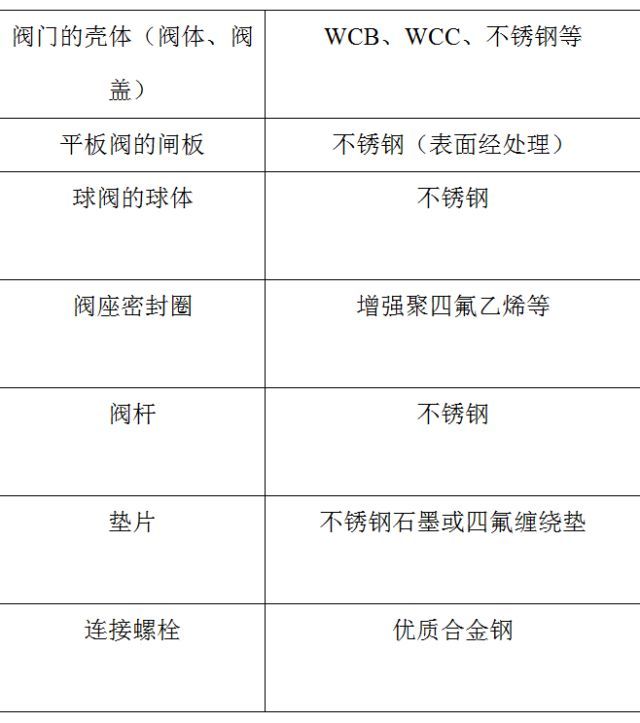 长输管线阀门使用材料