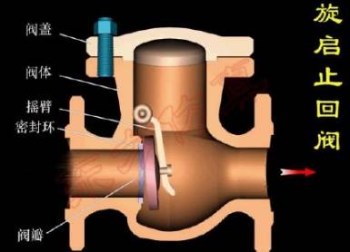 这种阀门的阀瓣绕阀座处的销轴旋转。阀瓣一般为整体结构,有些大口径止回阀(公称直径为600mm及以上)多采用多瓣式。