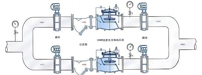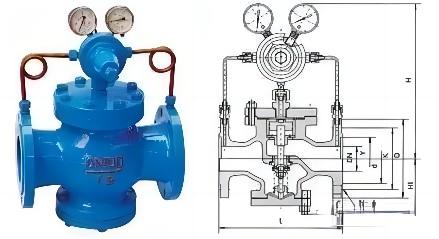 减压阀是将介质压力降低到一定数值的自动阀门, 一般阀后压力要小于阀前压力的50% 。减压阀种类很多, 主要有活塞式和弹簧薄膜式两种。
