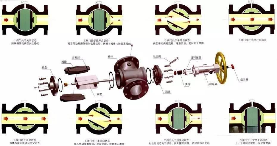 阀瓣是一个圆盘,通过阀杆旋转,阀瓣在阀座范围内作90度转动,实现阀门的开关。它在管路中起关断作用。亦可调节流量。