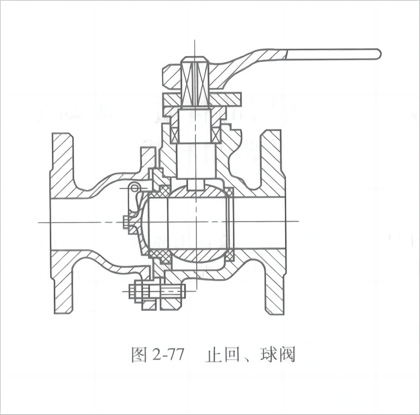 这是一种两用阀。如图 2-77所示,是一种可以做止回和球阀两用的阀门。当球阀处于开启状态时,该阀完全可以起到止回阀的作用,是一种旋启式止回阀。当关闭球阀时,即把管路中介质切断