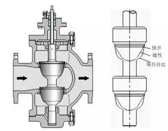 对单芯而言,当介质是流开型时,阀稳定性好;当介质是流闭型时,阀的稳定性差。双座阀有两个阀芯,下阀芯处于流闭,上阀芯处于流开。