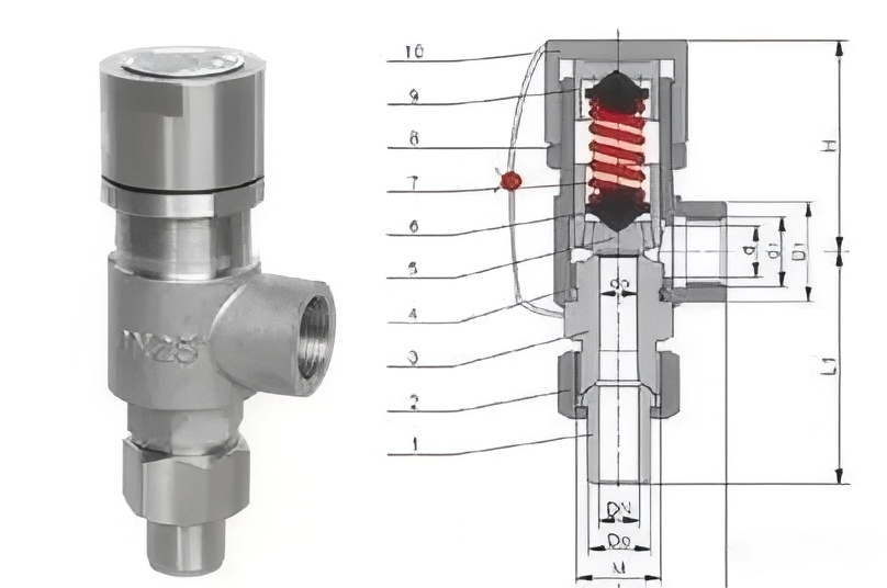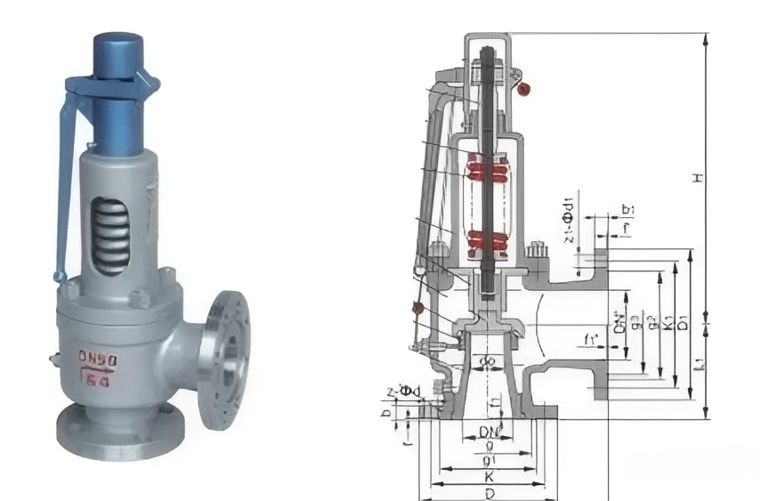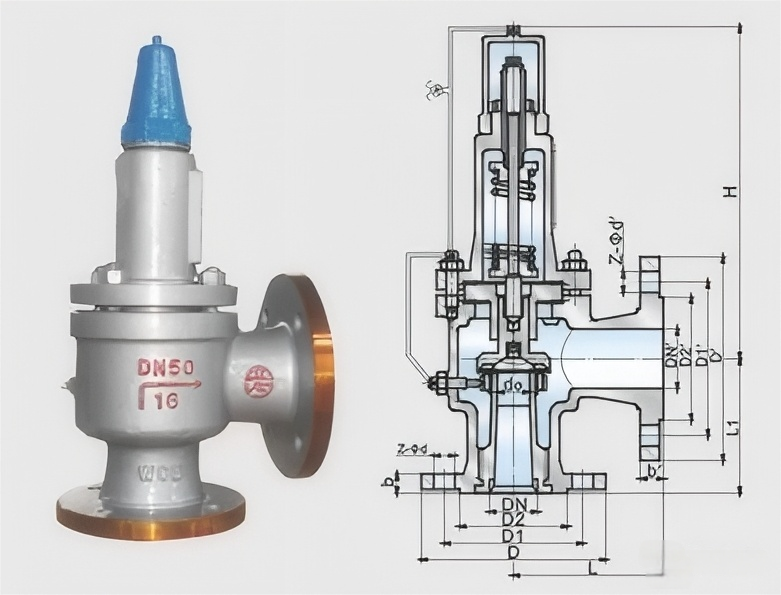 弹簧式安全阀是利用压缩弹簧的力来平衡作用在阀瓣上的力。螺旋圈形弹簧的压缩量可以通过转动它上面的调整螺母来调节,利用这种结构就可以根据需要校正安全阀的开启(整定)压力。