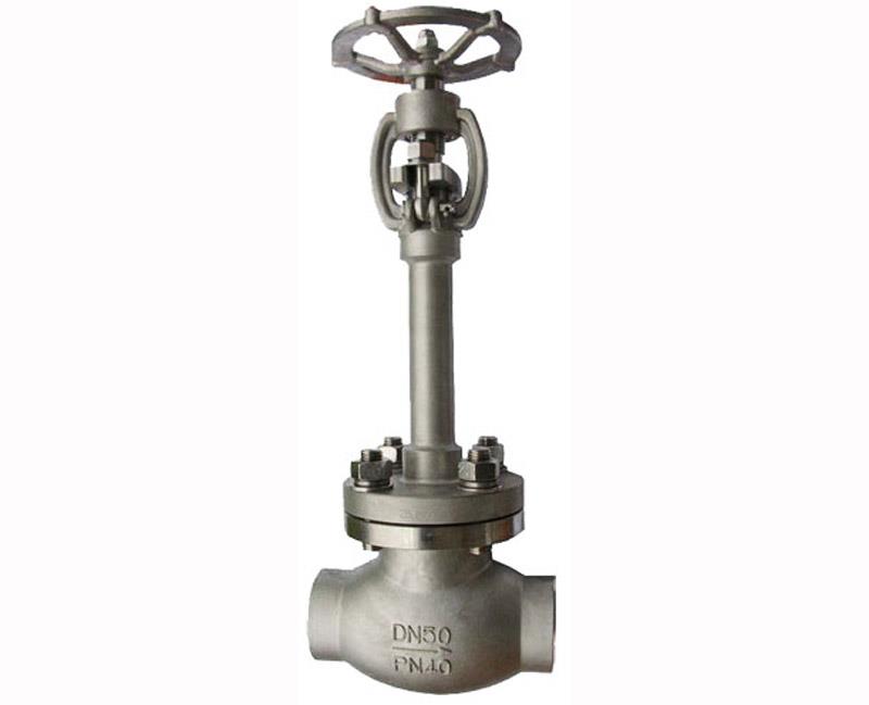 LNG截止阀是一种应用于低温液化气体的储运设备及相关管路中的低温截止阀;主要包括:阀体,阀盖安装在阀体上,手轮固定安装在阀杆上,阀杆通过螺纹与阀盖相配合,阀芯固定在阀杆的下端,阀杆套与阀盖相固定,压紧螺母通过螺纹与阀杆套相配合,压紧螺母压在压套上,压套将“V”型密封圈压在阀杆与阀杆套之间的挡圈上;其特点是:在压紧螺母与压套之间设置有弹簧,弹簧紧压在压套上。使用所述的低温截止阀,密封效果更好。