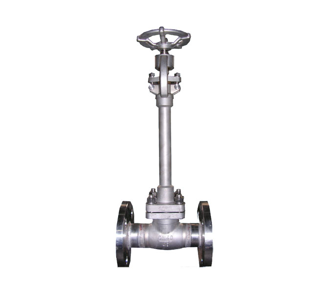 LNG截止阀是一种应用于低温液化气体的储运设备及相关管路中的低温截止阀;主要包括:阀体,阀盖安装在阀体上,手轮固定安装在阀杆上,阀杆通过螺纹与阀盖相配合,阀芯固定在阀杆的下端,阀杆套与阀盖相固定,压紧螺母通过螺纹与阀杆套相配合,压紧螺母压在压套上,压套将“V”型密封圈压在阀杆与阀杆套之间的挡圈上;其特点是:在压紧螺母与压套之间设置有弹簧,弹簧紧压在压套上。使用所述的低温截止阀,密封效果更好。