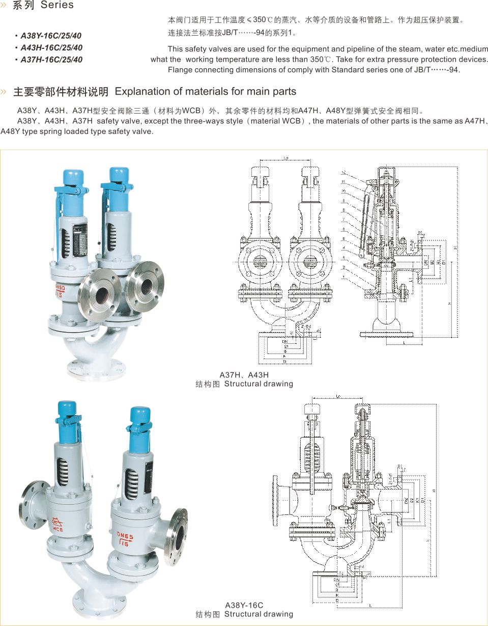 ≤350℃的蒸汽、水等介质的设备和管路上。作为超压保护装置。连接法兰标准按JB/T......94的系列1