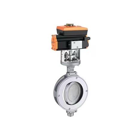 气动三偏心蝶阀由活塞式气动执行机构及三偏心金属密封阀体组成,其结构采用三维编心原理设计,阀座采用硬软密封兼容的多层次结构,加工精湛,工艺先进。气动三偏心蝶阀可外配气动阀门定位器,输入控制信号(4-20mADC或1-5VDC)气源即可控制运转,亦可配行程限位开关、电磁阀、三联件及0.4-0.7MPa气源可实现开关操作,并送出二对无源触点信号指示阀门的开关。气动三偏心蝶阀由阀体、蝶板、多层次阀座、阀杆、传动机构等主要部件组成,属长寿命、节能型蝶阀。气动三偏心蝶阀被广泛地应用到冶金、电力、石油、化工、空气、煤气、可燃气体以及给排水等腐蚀性介质的管道上。