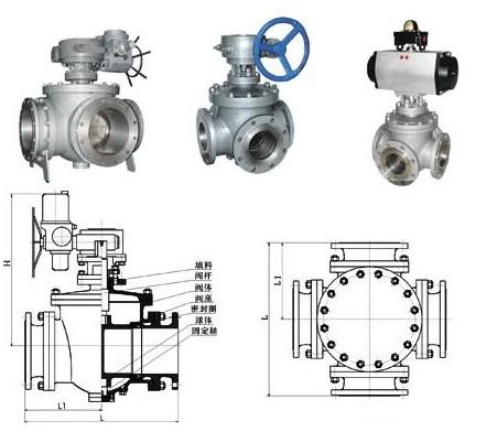 四通球阀 主要外形尺寸