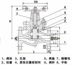 在阀门中柱塞与密封环间采用过盈配合,通过调节压盖中法兰螺栓,使密封环压缩所产品生的侧向力与阀体中孔面及柱塞外圆密封,从而保证了阀门的密封性,杜绝了内泄漏、同时阀门开启矩小、能实现阀门的迅速开启和关闭。