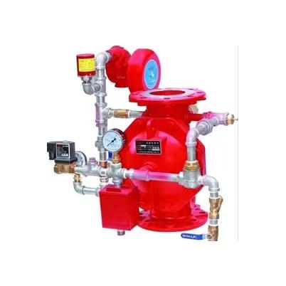 雨淋灭火系统由电控雨淋阀、开式或闭式喷头(另外购买)、水流指示器(另外购买)、水力警铃、压力开关(另外购买)、电控制柜(另外购买)等组成电控制雨淋系统。在工作伺应状态时,雨淋阀将消防水封闭于管网供水侧,系统侧管网中没有水。